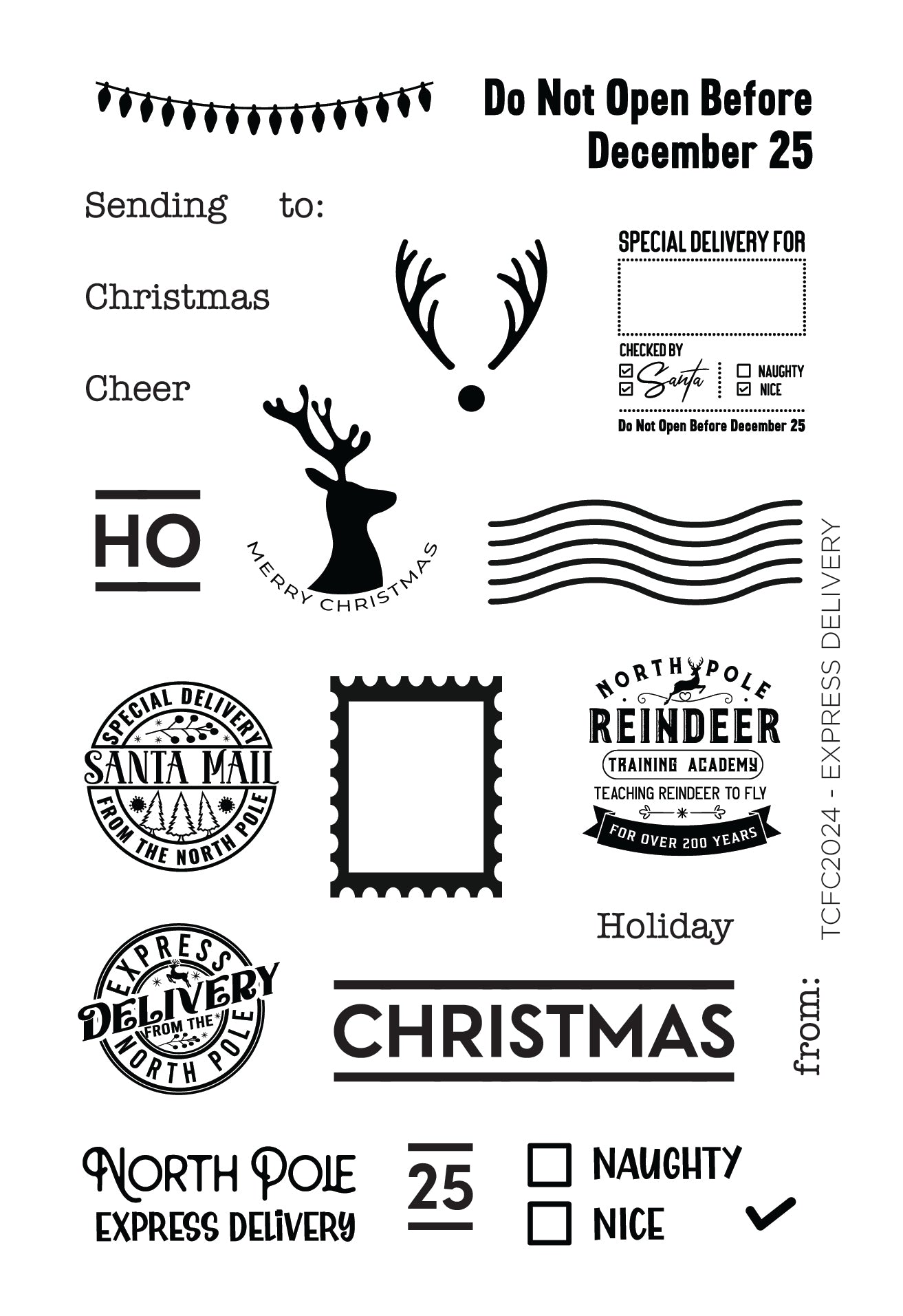 Embrace the festive spirit with our Express Delivery 4x6 Clear Photopolymer Stamp Set. This 21-piece set, made of high-quality clear photopolymer and proudly crafted in the USA, is designed to perfectly coordinate with our Christmas Post Line and Layer It Die Set. Create cheerful holiday tags to add to your cards or presents, making each gift a joyful experience. This set is a must-have for papercrafters looking to add a touch of personalized cheer to their holiday creations. Enjoy the seamless quality and festive versatility that our beloved community trusts and adores!